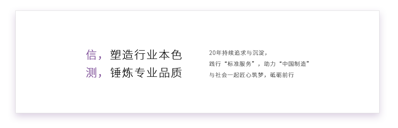 信測標準擁有多項專利技術(shù)和軟件著作權(quán),先后獲得“國家級高新技術(shù)企業(yè)”、“廣東省中小企業(yè)公共技術(shù)服務示范平臺”、“江蘇省生產(chǎn)性服務業(yè)領軍企業(yè)”、“廣東省名牌企業(yè)”、“深圳市生產(chǎn)性服務業(yè)公共服務平臺”等稱號。公司秉承“立信、善測”的經(jīng)營理念,致力于通過卓越的服務,幫助客戶提高研發(fā)和創(chuàng)新水平,提升產(chǎn)品質(zhì)量,創(chuàng)造美好生活。